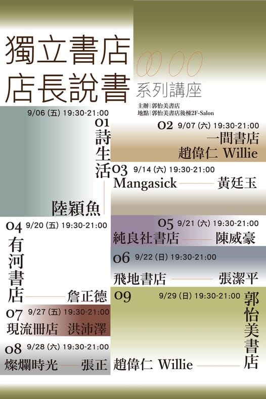台北- 獨立書店店長說書系列講座 | 詩生活書店 (9/6)