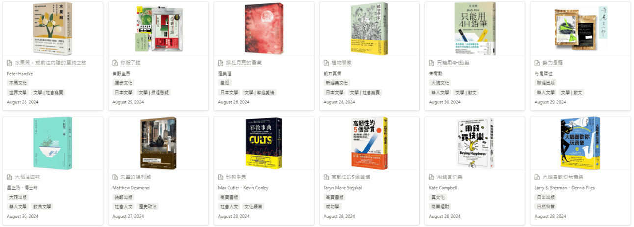 然後因為我從七月底開始微調了生活的作息,因此閱讀量也比上個月上升不少。