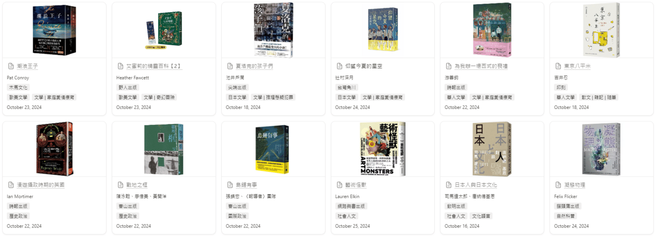 每本書都有簡介整理和第一眼的想法喔!